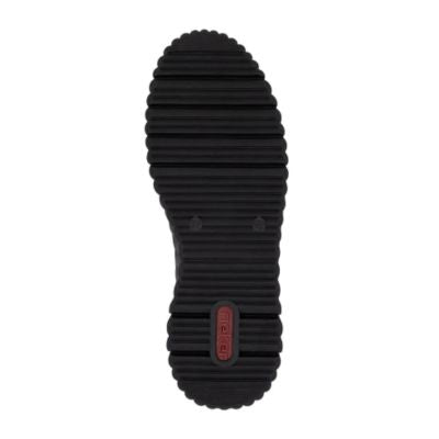 Comfort meets style. These black Rieker low-top sneakers are made of patent leather and impress with their modern design and high comfort. The clever combination of lacing and zipper makes the shoe easy to put on and take off. The platform sole is light and grippy and ensures good traction at all times. With the padded and removable insole, the sneakers have another practical comfort feature. Simply top!